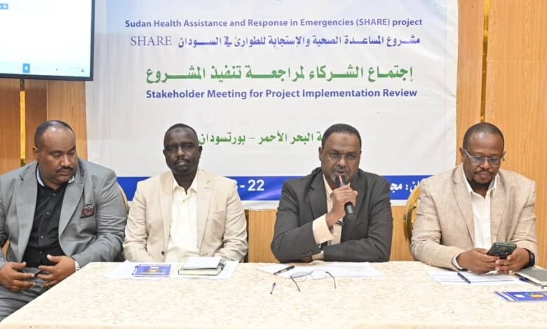 جاء ذلك خلال اجتماع الشركاء لمراجعة تنفيذ مشروع (SHARE)، الذي عُقد اليوم السبت بفندق “الربوة” في بورتسودان، بحضور قيادات وزارة الصحة الاتحادية، ومديري وزارات الصحة الولائية، وممثلي المستشفيات المستهدفة، إلى جانب وفد منظمة الصحة العالمية.