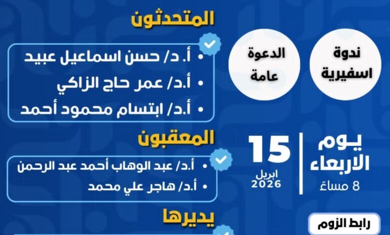 ودعا المنظمون المهتمين بالمشاركة عبر منصة (زووم) إلى التأكد من تحميل التطبيق مسبقاً، لضمان الانضمام والمشاركة الفاعلة في فعاليات الندوة.
