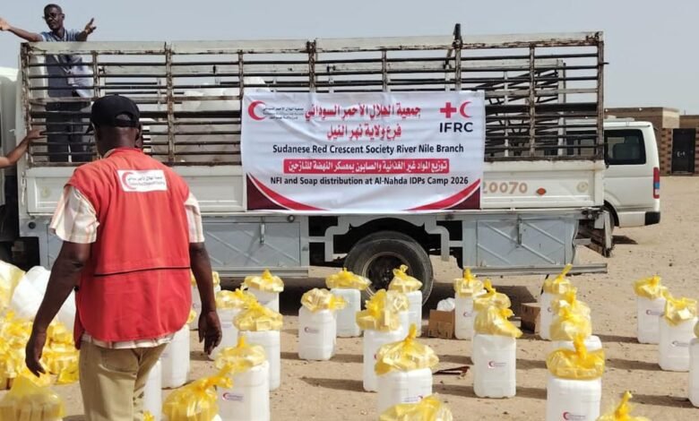 قسم المياه والإصحاح بجمعية الهلال الأحمر السوداني – فرع ولاية نهر النيل اليوم يدشن حملة توزيع مواد غير غذائية وصابون لأكثر من ألف أسرة نازحة بعطبرة