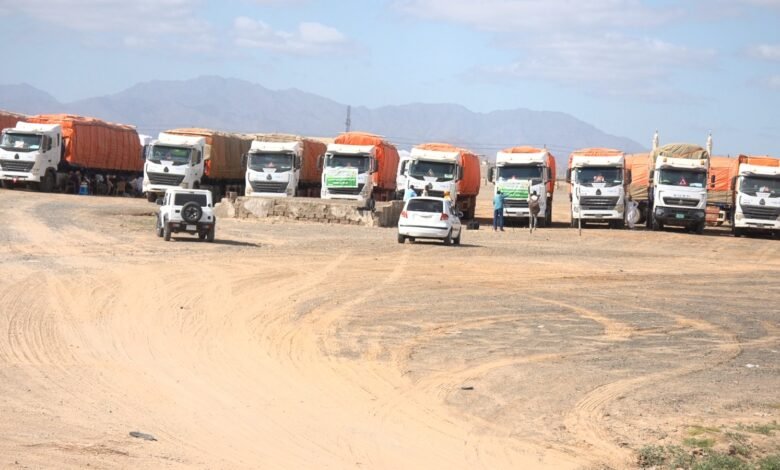 واوضحت أن القافلة تتكون من ٩٣ شاحنة سعة ٥٠ طن لكل شاحنة عبارة عن مواد غذائية متنوعة وملابس ومستلزمات إيواء وأدوية كمساهمة من جهات محلية ومانحين وتكفلت وزارة المالية بشراء الدخن وتكفلت بالترحيل.