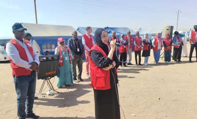 حيث رافق الوفد قافلة إنسانية تحمل مساعدات غذائية وغير غذائية وادوية مقدمة من فرع البحر الأحمر، فضلا عن مواد ايواء و اندية مشاهدة للمساحات الصديقة للاطفال داخل المخيم ضمن جهود المتطوعين فى مجال الدعم النفس اجتماعى مقدمة من ولاية الخرطوم.