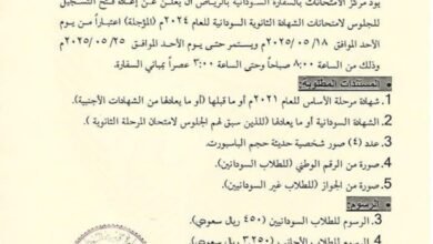 الرياض : شارع النيل نيوز أعلن مركز الامتحانات بالسفارة السودانية بالرياض بالمملكة العربية السعودية عن إعادة فتح التسجيل للجلوس لامتحانات…