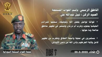 القوات المسلحة : تطهير كامل ولاية الخرطوم من أي وجود لعناصر مليشيا آل دقلو الإرهابية