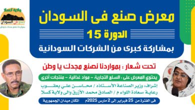 كسلا: شارع النيل نيوز تنطلق بولاية كسلا الثلاثاء المقبل فعاليات معرض صنع فى السودان فى دورته (15)والذى يستمر لأسبوع بمشاركة…