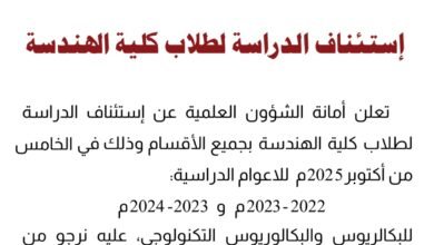 جامعة السودان- كلية الهندسة- إستئناف الدراسة- جميع الأقسام